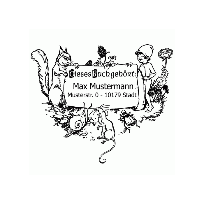 Ein Exlibris Stempel! Die Tiere halten Ihre persönliche Adresse hoch! Dieser schöne Bücherstempel markiert Ihr Buch.